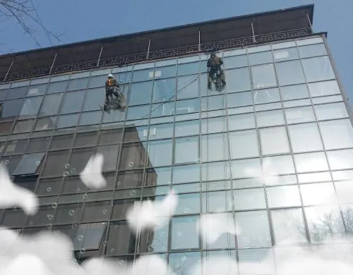 • Deraza oynalari, balkon qismi, shishadan qilingan fasad vitrinalarni alpinistlarni jalb qilgan holda artish;
